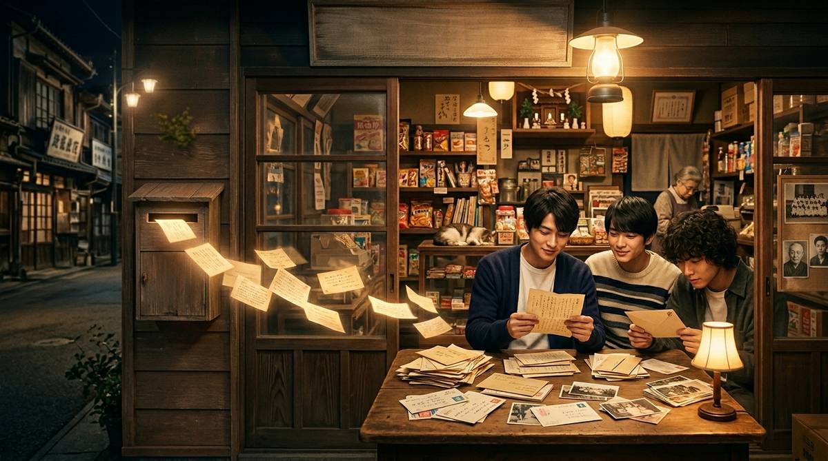 物語は、悪事を働いた三人の少年——敦也、幸平、翔太が、逃げ込み先として古い廃屋「ナミヤ雑貨店」に身を隠す場面から動き出します。埃をかぶった店内に、深夜、突如として郵便口から一通の手紙が投げ込まれるという、非日常的な出来事が彼らを襲います。